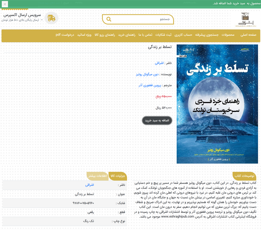 با انتخاب گزينه افزودن به سبد خريد در بالاي صفحه اين پيام (محصول به سبد خريد شما اضافه شد) نمايش داده مي شود.