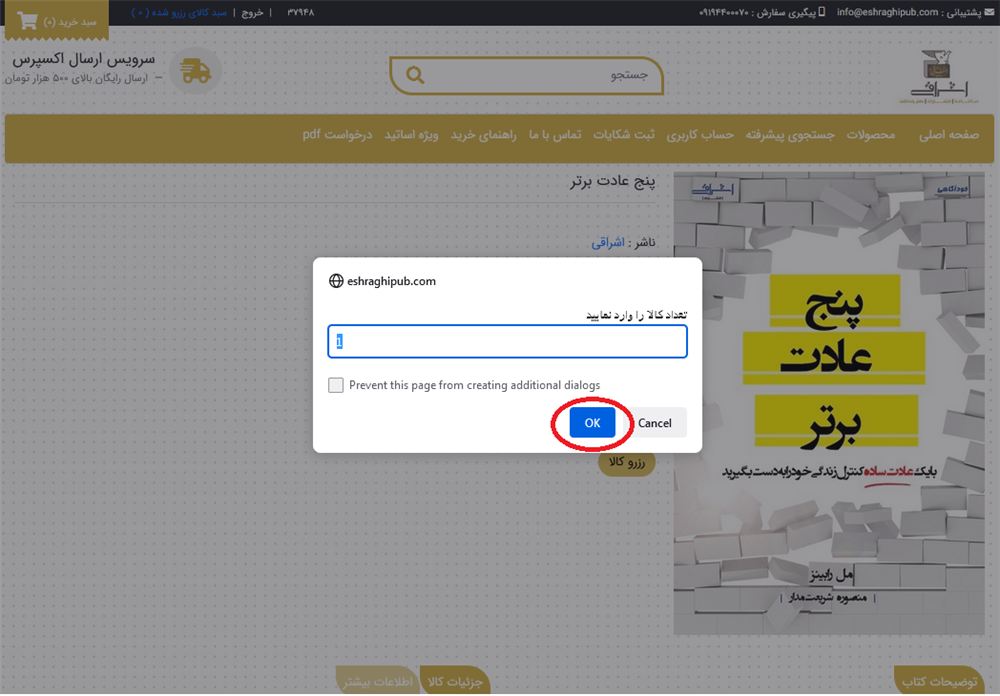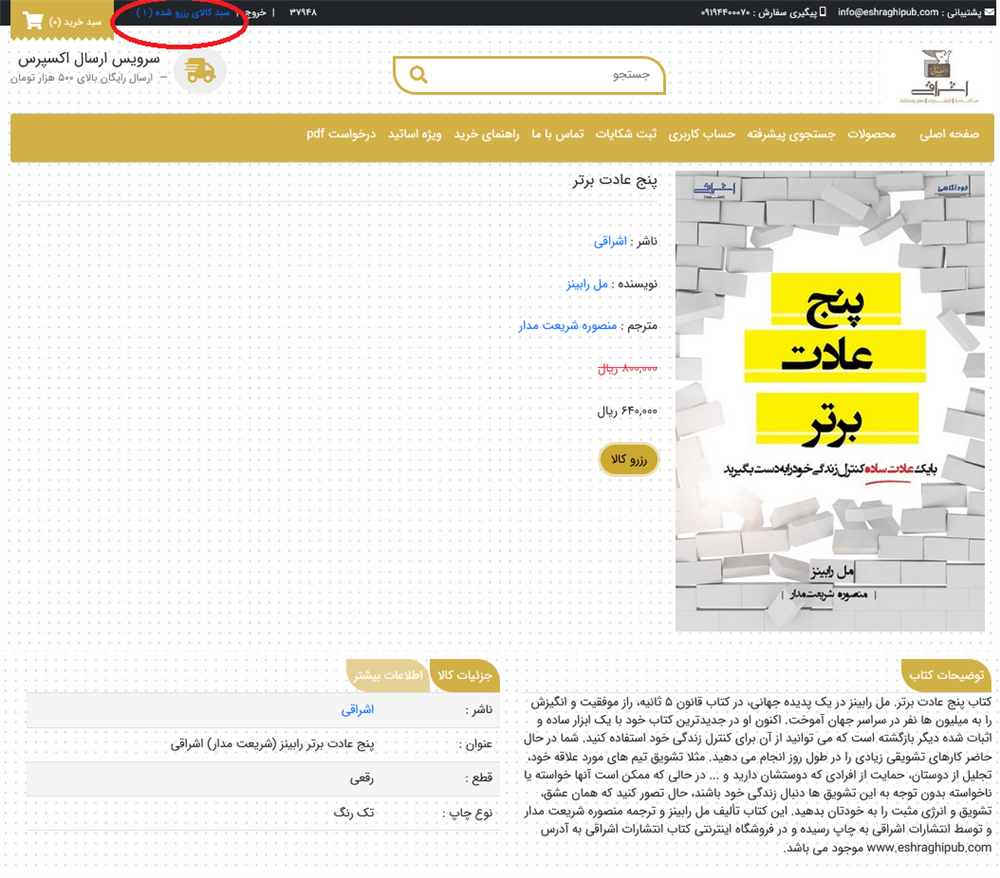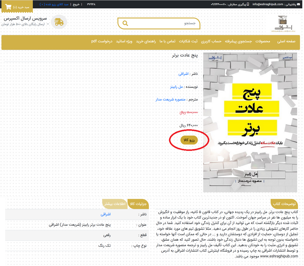 2.مشخصات كامل كتاب را مي توانيد مطالعه بفرماييد. گزينه رزرو كالا را كليك نماييد.
